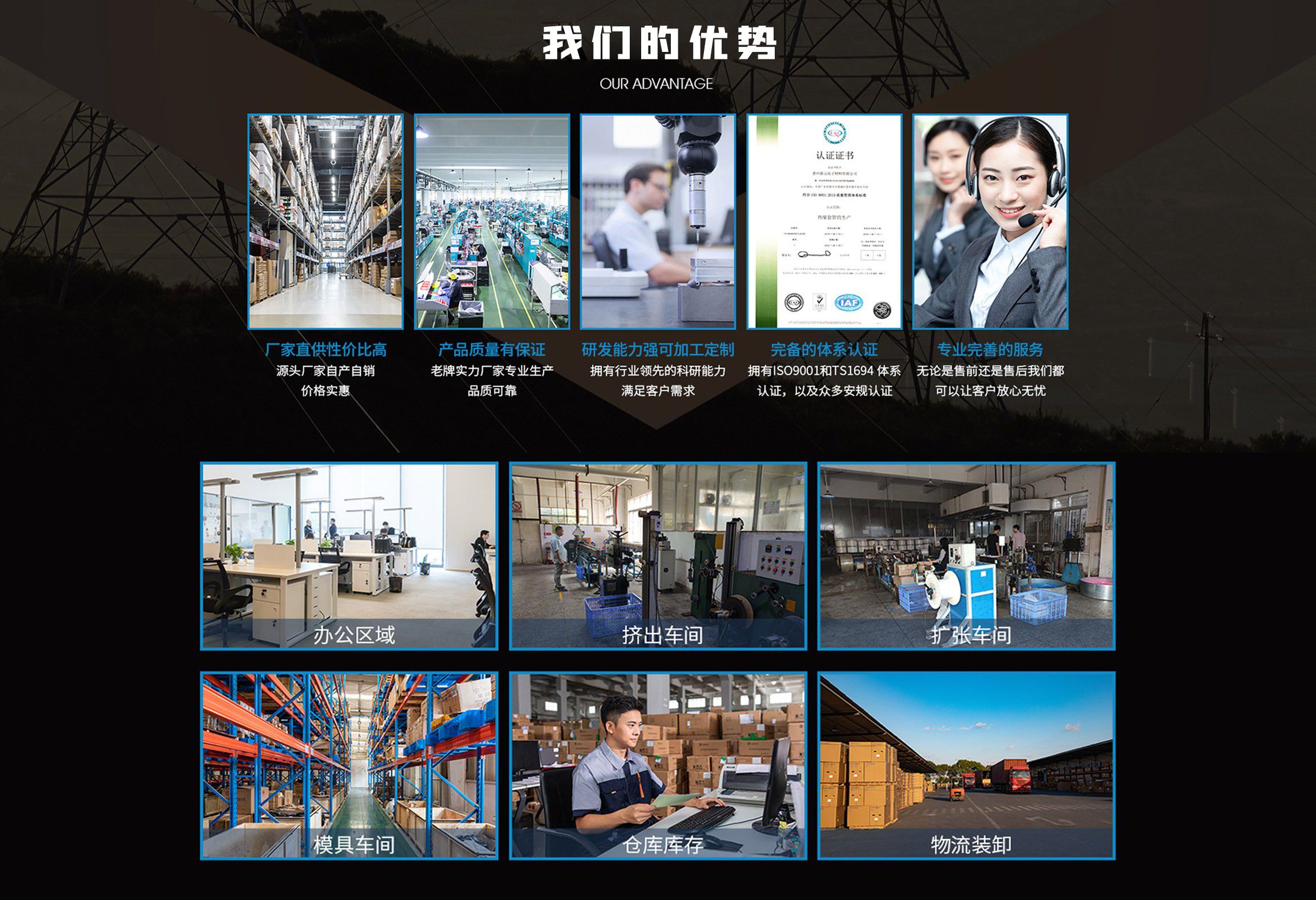 南通市捷華熱收縮材料有限公司是一家專業的熱縮材料生產廠家和銷售商。公司的管理層包括總經理、研究開發部總工程師及大部分的中層管理干部都有超過20多年從事熱縮材料的開發,提升生產及服務的工作經驗。所以我們有足夠的信心提供給我們的客戶高品質的產品及最具競爭力的價格。  我們公司主要產品有PE無鹵環保熱縮管,母排絕緣高業熱縮管,防水帶膠雙壁熱縮管,PVC熱縮套管,PET熱縮套管,熱縮管,熱縮套管,熱收縮管,熱縮管廠家等。產品符合CE及RoHs標準,廣泛應用于電子產品,電力行業,通信行業,汽車行業,造船行業,工業設備行業,家  電行業,軍工行業等產品上的絕緣,密封,連接,保護。豐富的產品線可以滿足不同行業的產品不同應用與需求。  公司建立了獨立的研究與開發實驗中心,每年持續不斷投入大量資金開發新產品及提升產品性能。強大的研發中心確保我司熱縮材料產品在行業中處于領先地位,并且可以針對客戶的個性化需求進行針對性的研發與生產?! 〗萑A熱收縮材料堅持以“誠信務實、勇于負責、持續成長”的核心價值觀,以“為全球客戶提供一流熱縮材料解決方案”為使命,用誠信經營打造企業品牌,以優質的產品、誠摯的服務來回報客戶;公司致力于通過有效的管理、卓越的設計和良好的服務來實現使命;公司推行“綠色制造”理念,堅持可持續...